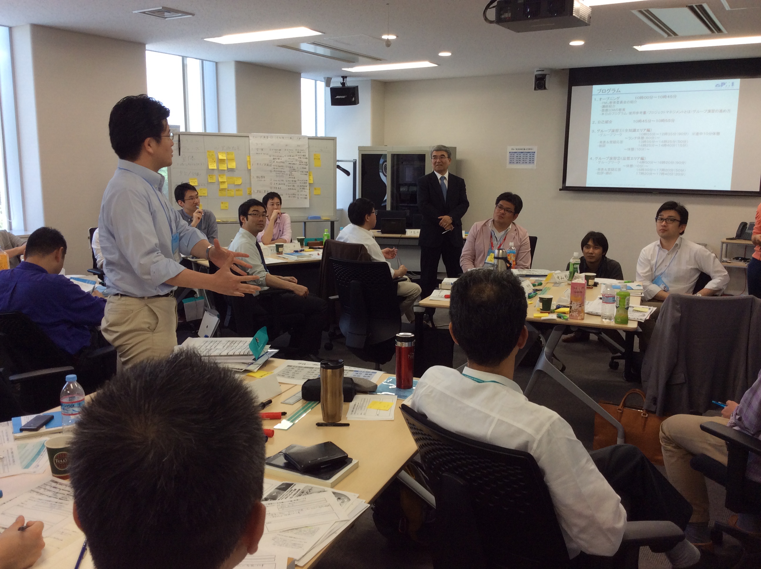 PMBOK®ガイド(プロジェクトマネジメント知識体系ガイド)は、プロジェクトをうまく遂行するためのガイドラインとして、世界の実務者が業界を問わず認めた知識と実務慣行をまとめた標準ですが、これをどう実践に適用するかがわからないという声をよく聞きます。このワークショップでは、プロジェクトの問題発生事例を通して、PMBOK®ガイドを適用した対処方法をグループ演習によって学び、そこから得た教訓を自組織のプロジェクトで活用できるようになることを目指してデザインされました。