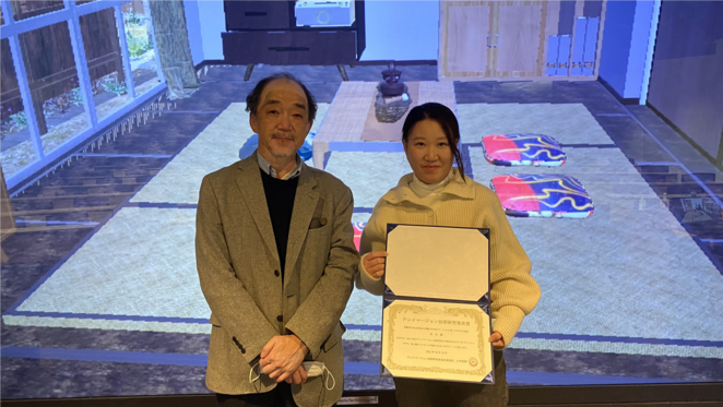2021年12月3日にオンラインで開催された日本バーチャルリアリティ学会第45回テレイマージョン技術研究会において発表を行った、メディアシステムラボ(小木研究室)の呉凡君の発表「高齢者の社会的孤立回避のためのソーシャルVRシステムの設計」が、テレイマージョン技術研究発表賞を受賞しました。この賞は、年3回行われているテレイマージョン技術研究会の中で特に優れた発表を行った方に贈られる賞です。
