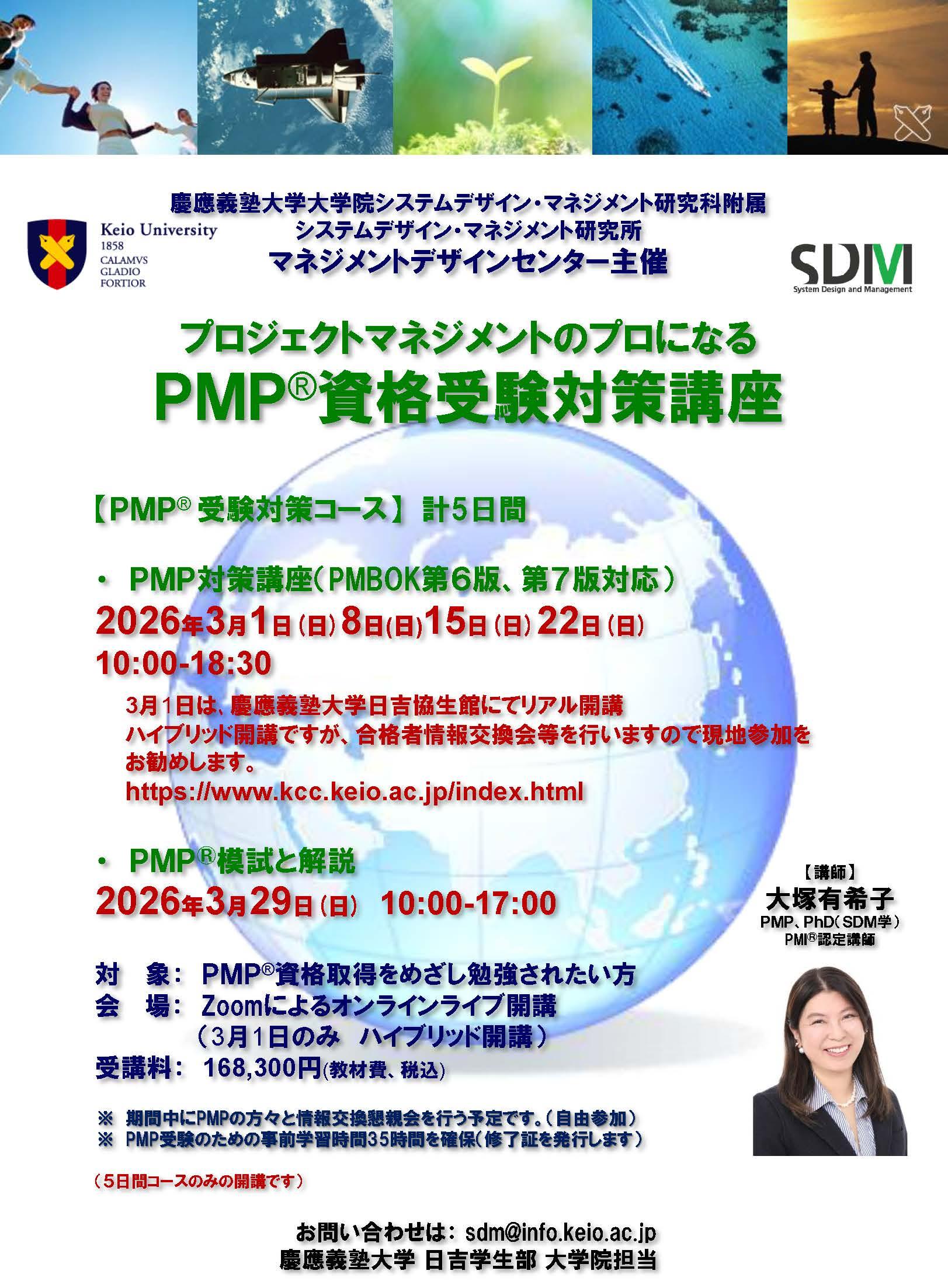 システムデザイン・マネジメント研究科(SDM)附属SDM研究所マネジメントデザインセンターでは、 PMPⓇ資格受験対策講座を開催いたします。